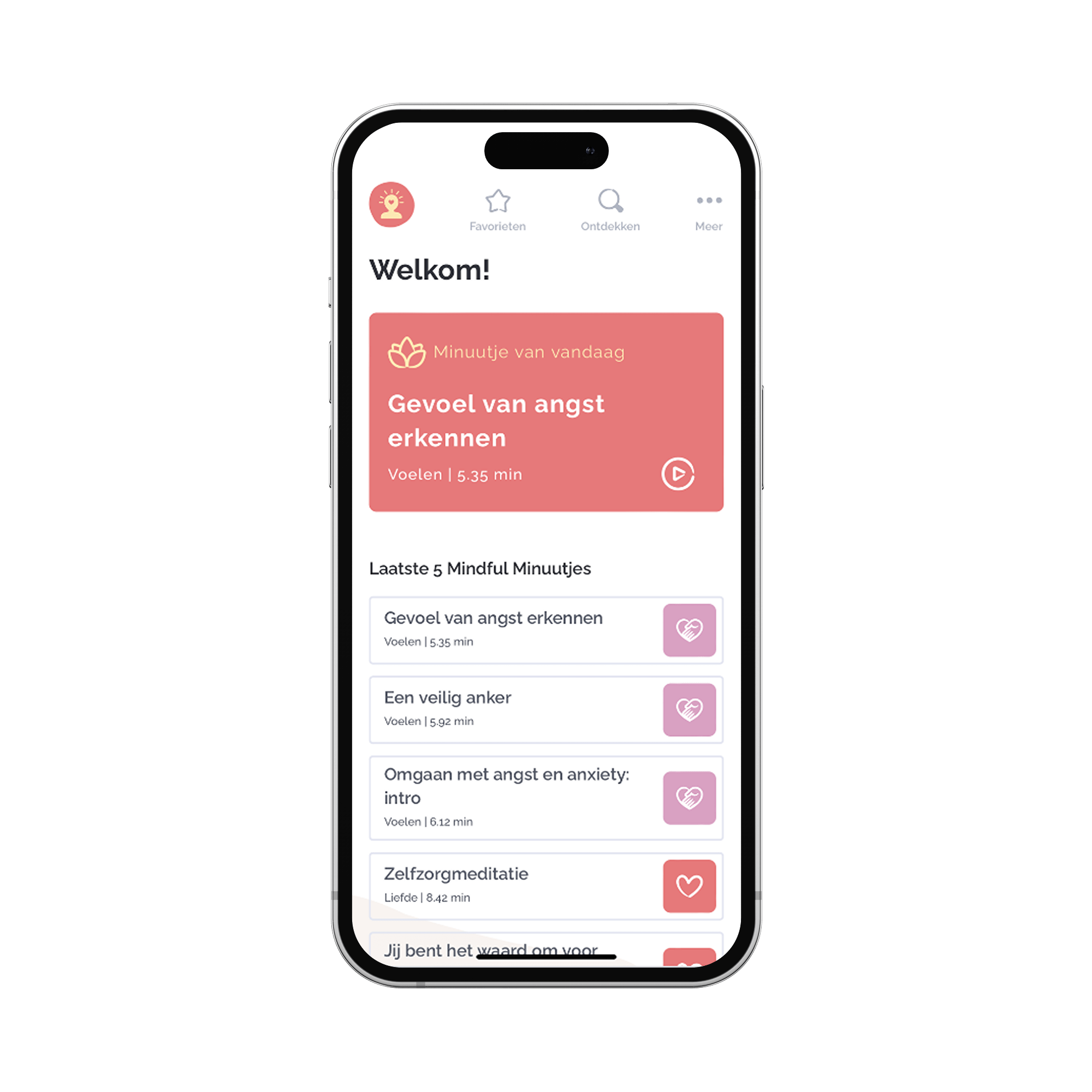 De Mindful Minuut App geeft je toegang tot een groeiende bibliotheek van meer dan 500 meditaties (korte en langere), verdeeld in thema’s zoals slaap, piekeren, zelfzorg en ademhaling. Je kunt zelf kiezen wat je nodig hebt op dat moment, en favorieten opslaan.
