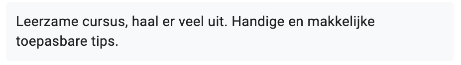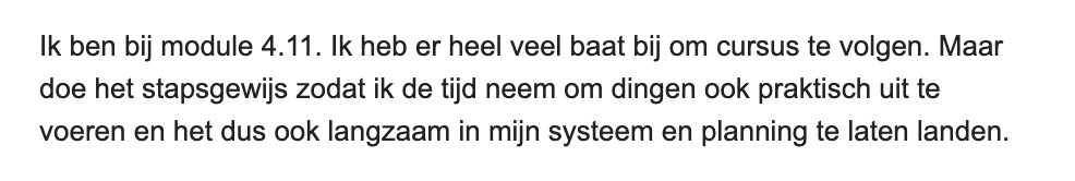 Bekijk op je eigen tempo: eke dag één of alles achter elkaar: jij bepaalt. Je hebt 12 maanden toegang.