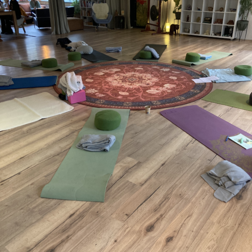 Er heerste bij binnenkomst een ontspannen sfeer en alles was goed verzorgd. Het ideale klimaat om echt even achterover te leunen. Na een rondje inchecken, luidde Marjolein de stilte in. Dit houdt in dat je van 10:00 tot 16:00 uur niet meer praat en ook geen (oog)contact maakt met anderen. Je keert in jezelf. Marjolein begeleidde meerdere meditaties achter elkaar en tussendoor was er telkens tijd voor een korte pauze.